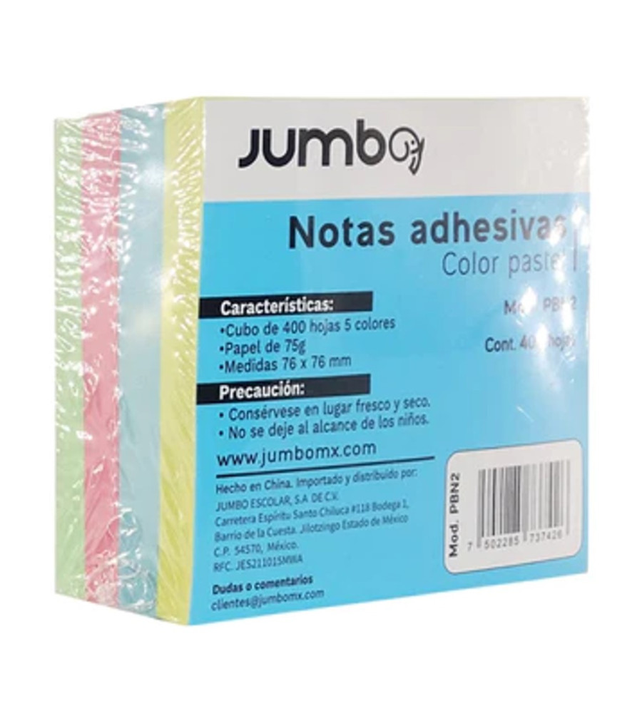 BLOCK DE NOTAS 3X3 PASTEL 400 HJS PBN2 JUMBO
