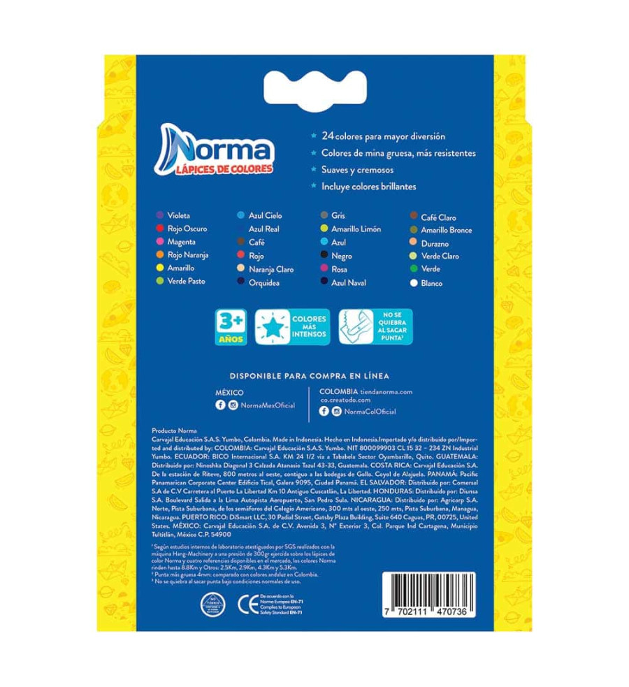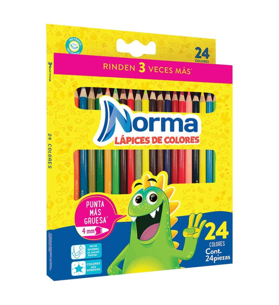 LÁPICES DE COLORES CAJA CON 24 PIEZAS LARGOS REDONDOS NORMA