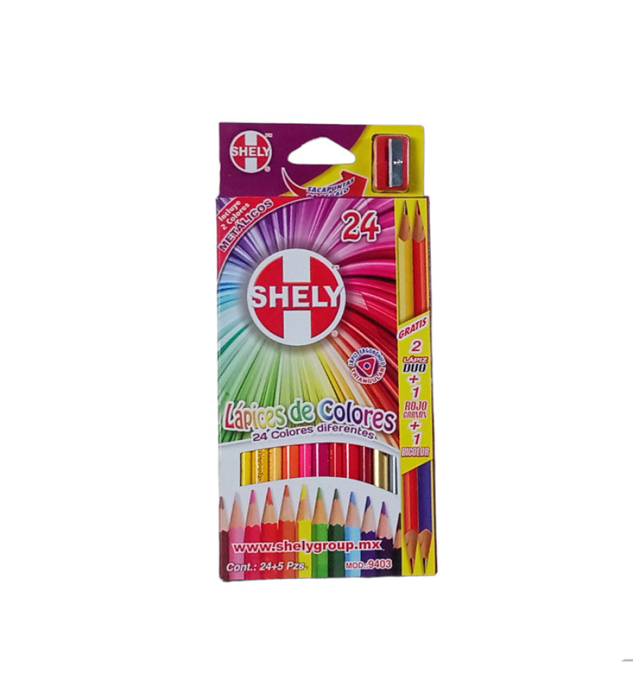 LÁPICES DE COLORES CAJA CON 24 PIEZAS LARGOS TRIANGULARES SHELY